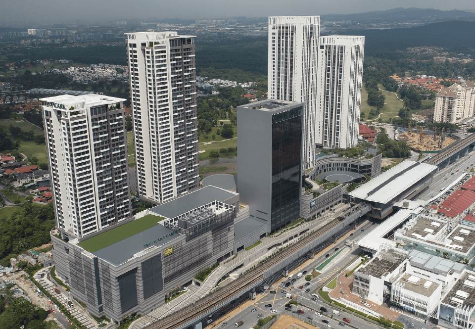 This is a mixed development of multi-storey retail, shoplots, office and residential. The shopping mall is 5-storey above ground, and the GFA is approximately 800,000 sqft and the total GFA is approximately 1,940,000sqft. There are 4 basement carpark. Performance Based approach is applied to the podium shopping mall.